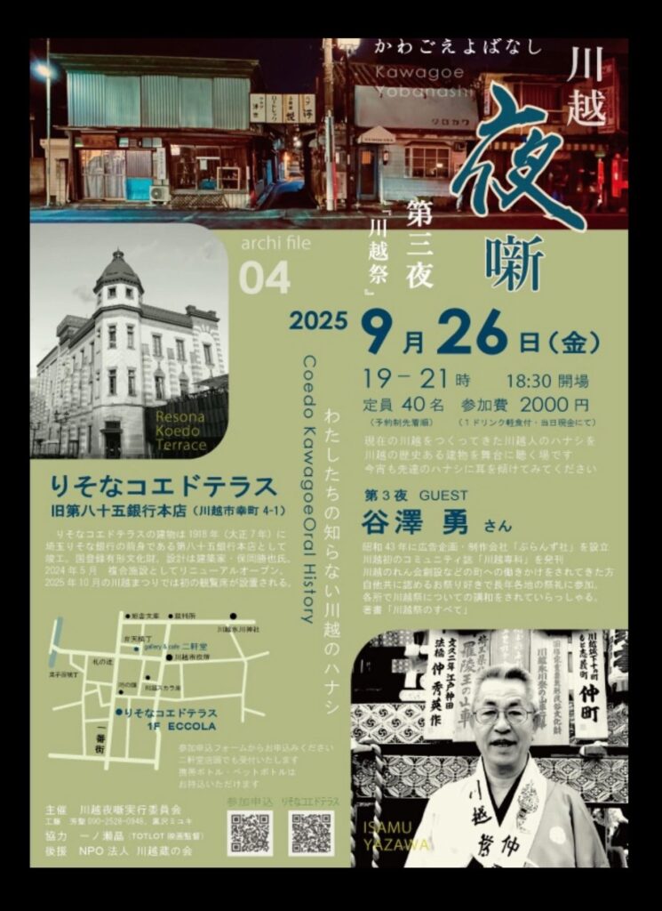 現在の川越をつくってきた川越人のハナシを川越の建物を舞台に聴く場です