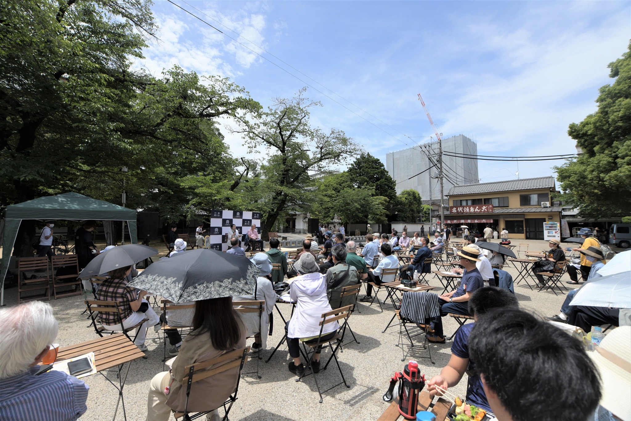 蔵の会40周年記念事業として始まった、まちづくりを考えるイベント。会員のみならず、市民の皆さんに広く気軽に参加してもらうイベントとして、蓮馨寺の境内で開催しました。