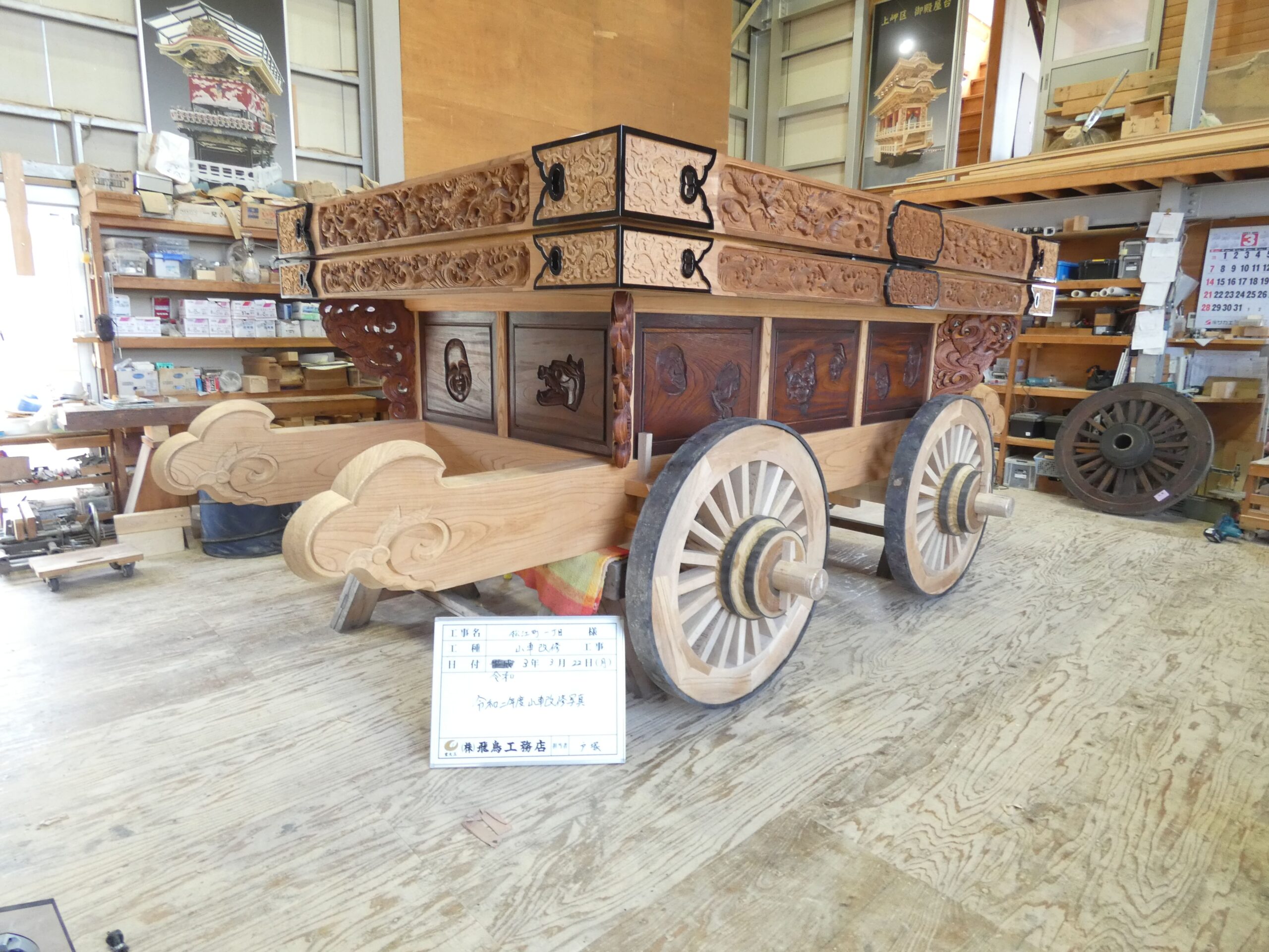川越まつりの山車(川越市指定有形民族文化財)の整備をお手伝いしています。松江町一丁目「龍神の山車」の改修工事の設計監理では山車の部材を丁寧に実測し、構造的に不安があった部分を改修しながら、可能な限り原型を変えないよう伝統工法にて解体組み立てできるように改修しました。(2022年)